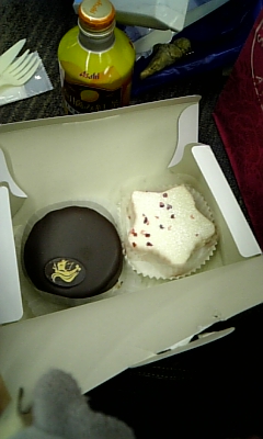 天満さんの知り合いの方からケーキと飲み物を沢山もらえてすごく感激でした。これが24時間振りの食事でした(笑)